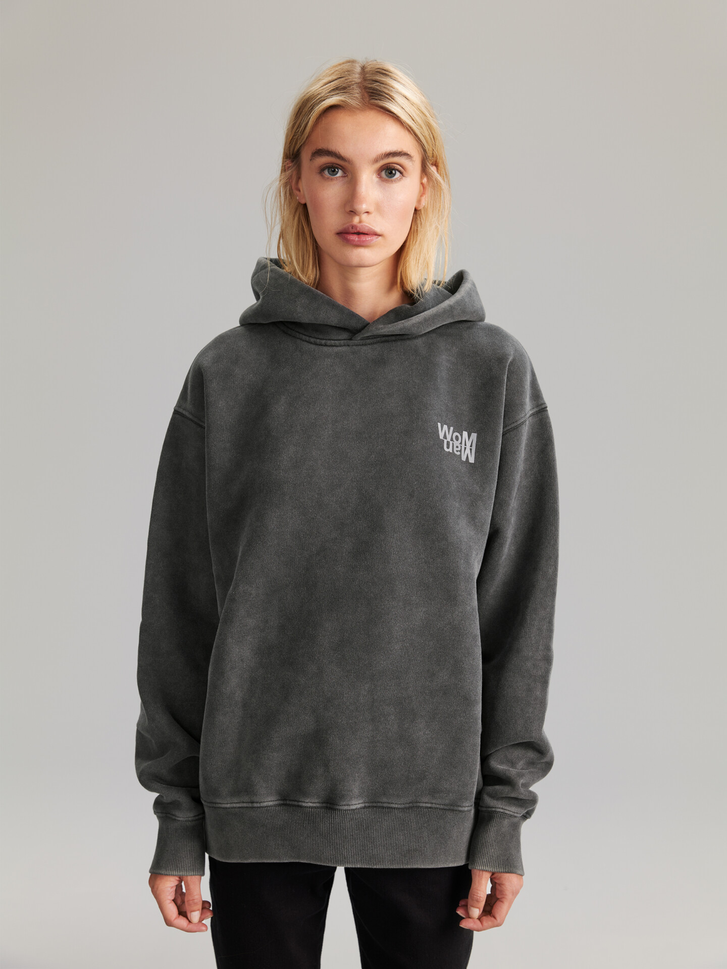 - WoMMan print in grey plastisol